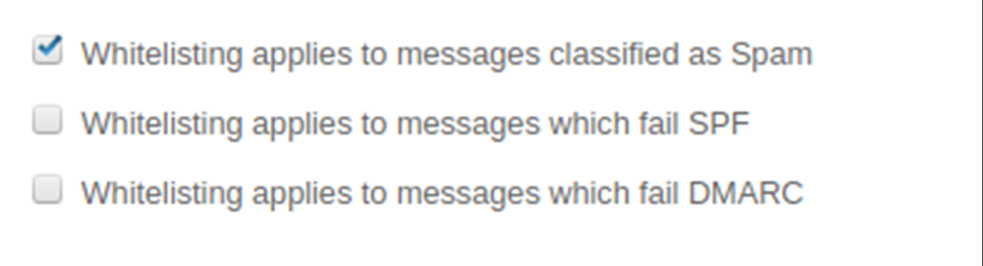 4. Copy the “From:” address and add this as a whitelist under the default set. You can check this applies to spam under the configuration tab.